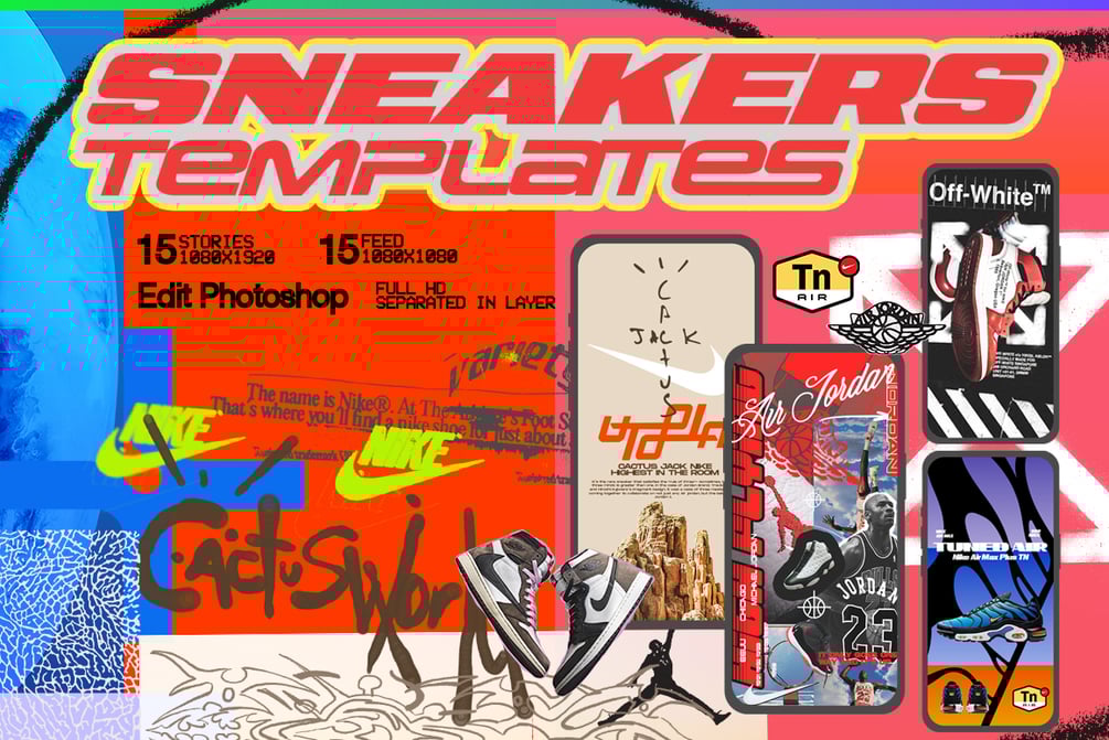 Instagram templates with visual identity from the world of sneakers.Full editable files Adobe Photoshop