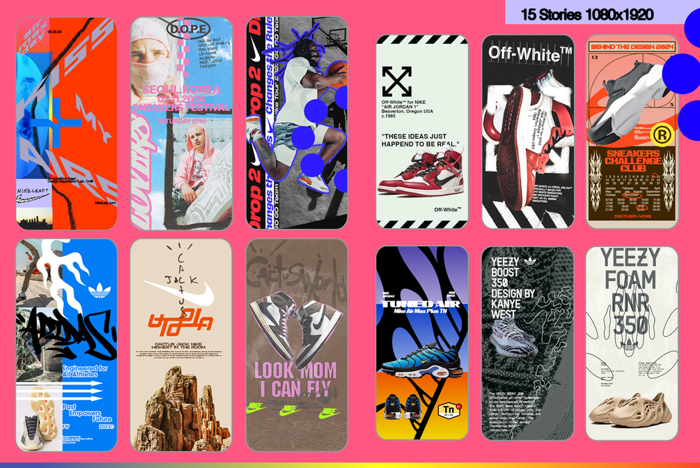 Instagram templates with visual identity from the world of sneakers.Full editable files Adobe Photoshop